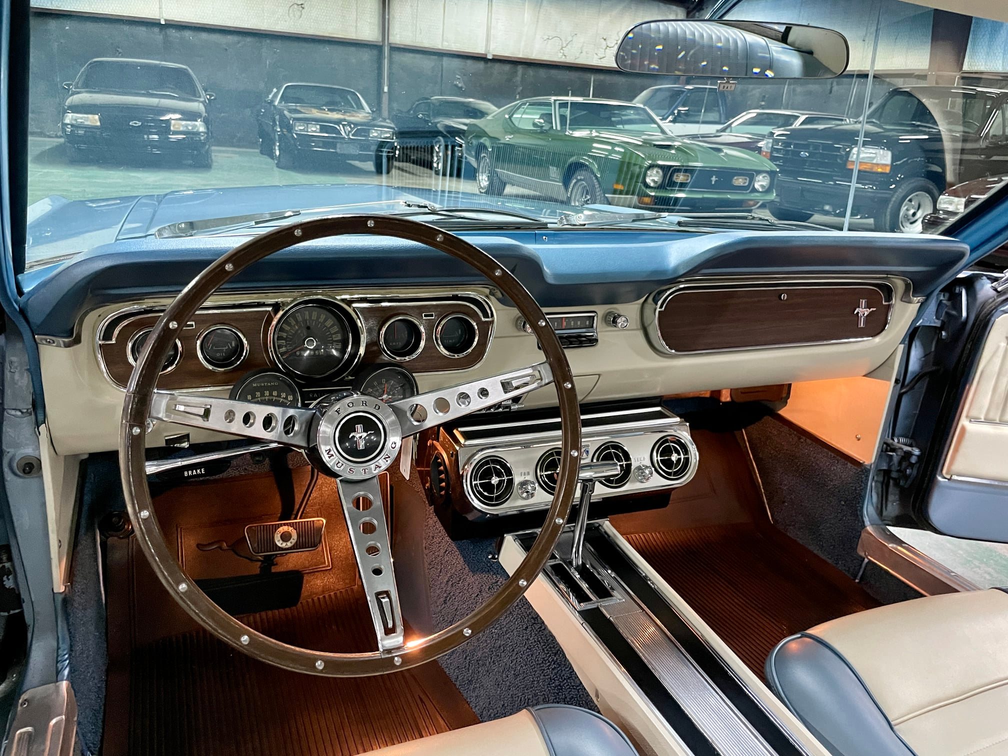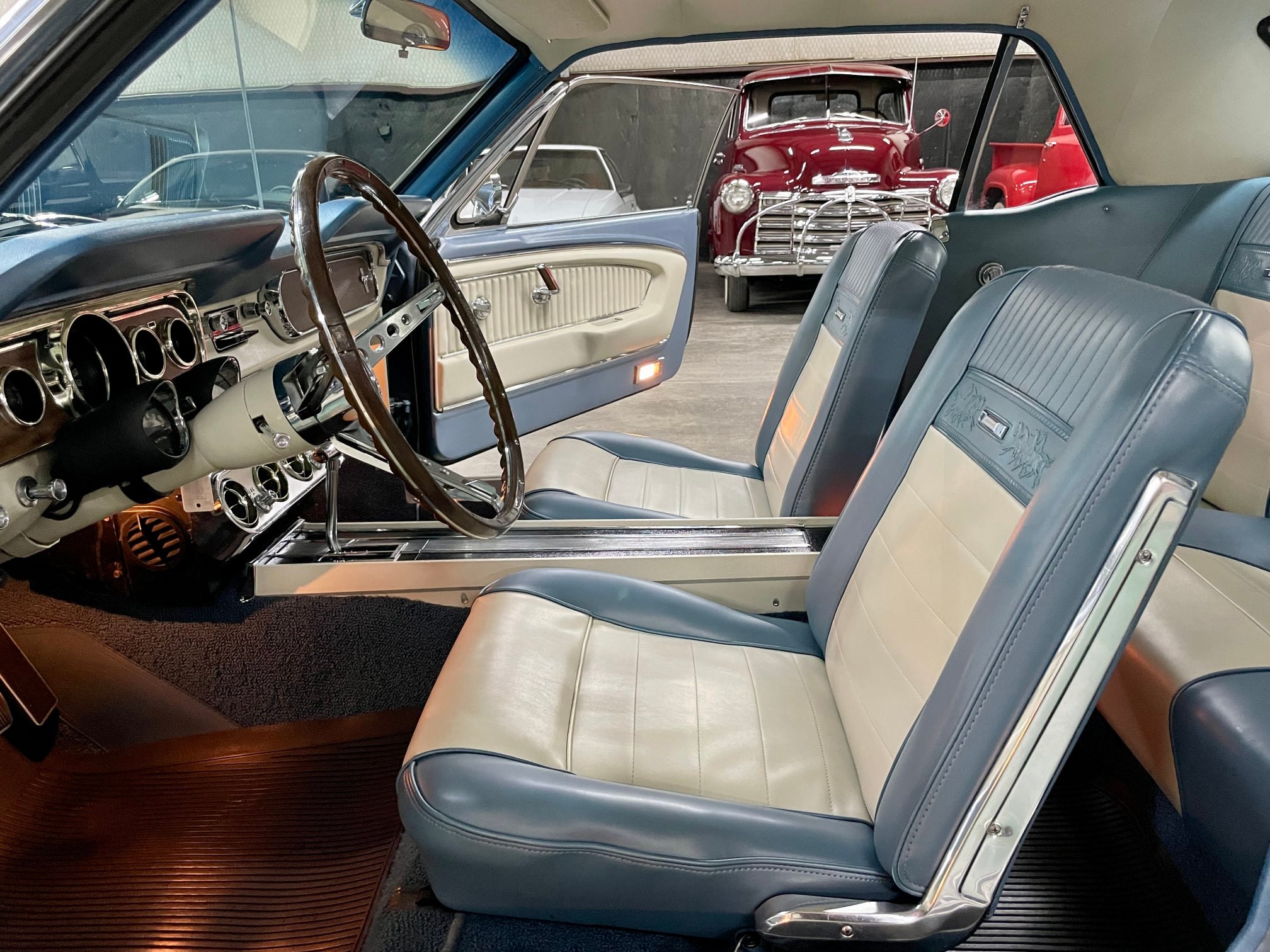D/A, A/C, freinage à disques, jantes 14″, intérieur Pony, pas une vraie GT (tableau de bord de 1966 et quelques éléments de GT), ancienne restauration