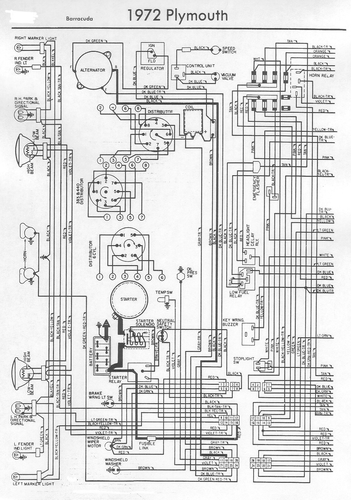 Schéma électrique Plymouth Barracuda 1972